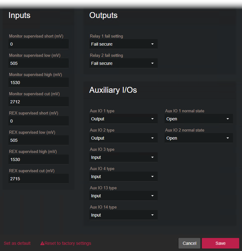 Sie können Hilfseingangsports und Hilfsausgangsports an AXIS-A1601-Controllern mithilfe des Synergis™ Appliance Portals so konfigurieren, dass sie als Eingänge oder Ausgänge fungieren.