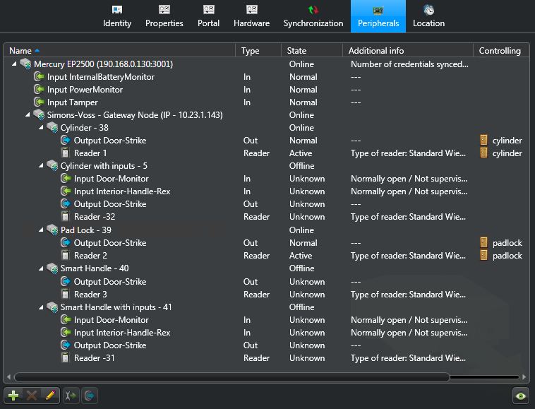 Da die Synergis™-Einheit nicht mit den SimonsVoss SmartIntego-Geräten kommuniziert, müssen Sie diese Geräte über einen Mercury EP- oder LP- (oder Honeywell-) Controller unter Verwendung des Config Tools registrieren.
