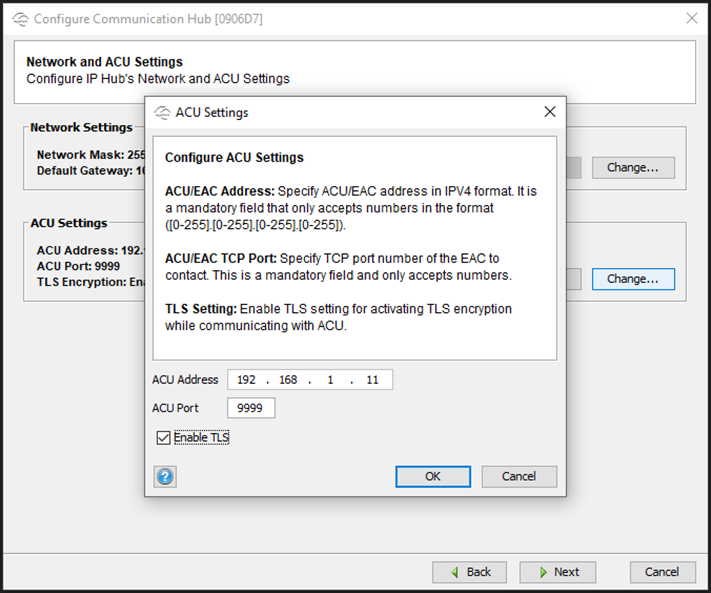 Geben Sie die IP-Adresse der Synergis™-Einheit als ACU-Adresse an.